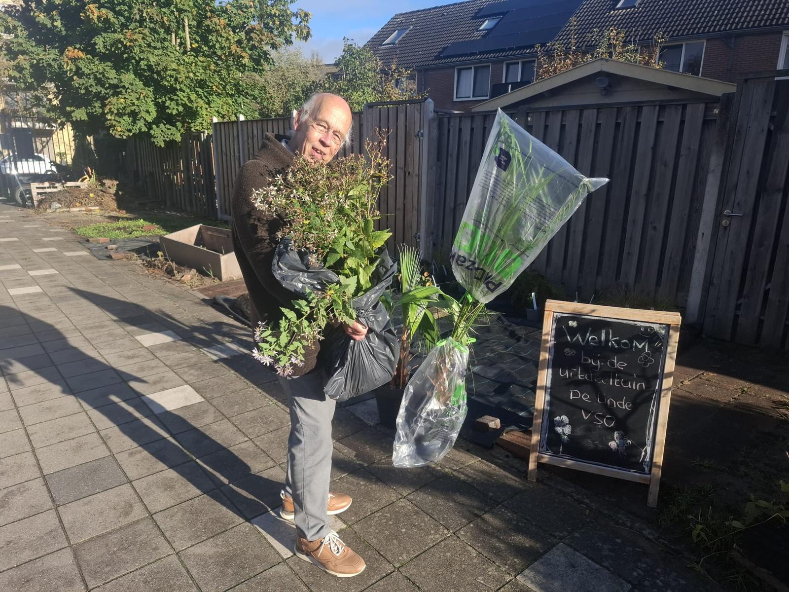 Collega Bo Hulsman begeleidt de leerlingen tijdens hun werkzaamheden in de tuin en ondersteunt hen bij hun ontwikkeling.